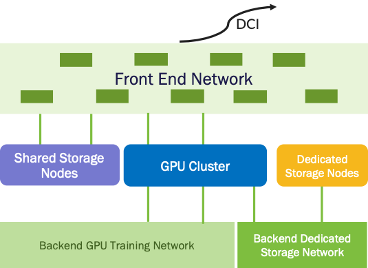 KI-Cluster verfügen in der Regel über mehrere Netzwerke, die jeweils unterschiedlichen Zwecken dienen. Das Frontend-Netzwerk verbindet den KI-Server mit dem Rest des Rechenzentrums und der Außenwelt und hilft den Benutzern, sich mit dem KI-Cluster zu verbinden. Das Data Center Interconnect (DCI) verknüpft mehrere Rechenzentren, in denen KI-Cluster vorhanden sind, um eine hohe Verfügbarkeit und Ausfallsicherheit zu gewährleisten, und das Scale-Out-Netzwerk wird für den Gradient Exchange während des Trainings verwendet. Das Backend-Storage-Netzwerk kombiniert die KI-Server mit Hochleistungsspeichern. Die Anwender bevorzugen dabei Ethernet. Schließlich verbindet das Scale-up-Netzwerk mehrere KI-Server innerhalb eines Gehäuses oder eines Racks mit einem Cache-kohärenten, herstellerspezifischen Netzwerk mit hoher Bandbreite wie NVLink für Nvidia und Infinity Fabric für AMD. Kürzlich wurde zudem eine auf offenen Standards basierende Alternative namens Ultra Accelerator Link (UALink) mit breiter Unterstützung der Industrie entwickelt.