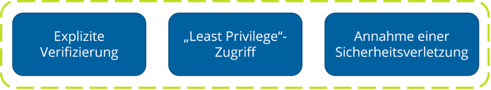 Nebst dem Bewusstsein, dass eine hundertprozentige Sicherheit im IT-Umfeld nie gewährleistet werden kann, versucht das Zero-Trust-Modell nicht nur ein Unternehmen oder eine Organisation bestmöglich zu schützen, sondern auch, mögliche Gefahren und Risiken frühzeitig zu identifizieren, Angriffe vorherzusehen und mögliche Auswirkungen zu minimieren. Zero Trust verfolgt daher diverse neue Prinzipien, die in traditionellen Sicherheitsmodellen nicht anzutreffen sind.