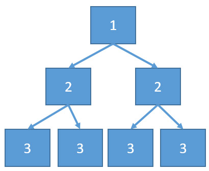 Sollte es Änderungen an einem Codebestandteil geben, die dessen Arbeitsweise negativ beeinflussen, kann sich dies negativ auf alle Bestandteile auswirken, die ihn als ausgehende Abhängigkeit besitzen. Auf der untersten Ebene hängen alle Bestandteile nur von sich selbst ab, daher enthalten sie eine Eins. Eine Ebene darüber haben die Elemente drei Abhängigkeiten, sich selbst und zwei folgende. Die oberste Ebene hat sich selbst, die darunter liegende Ebene und transitiv die darauf folgende als Abhängigkeiten und zeigt daher eine Sieben.