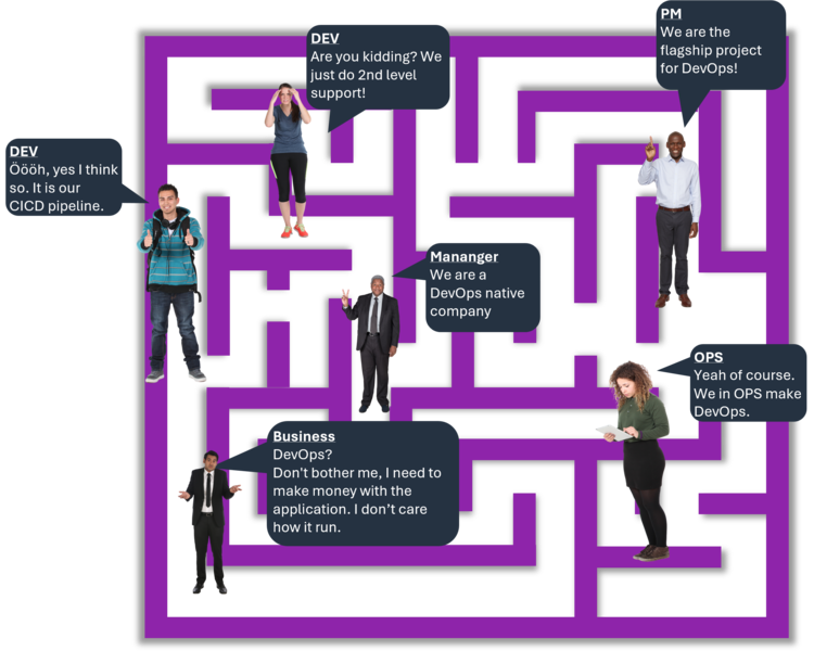 Ich habe mal IT-Mitarbeiter und Manager gefragt, was sie unter DevOps verstehen. Ich bin auf über 50 Erklärungen gestoßen. Eine kleine Auswahl: bessere Kommunikation, klare Verantwortlichkeit, End-to-End, Cloud, Continuous …, Freiheit, mehr Tools zu benutzen, Requirement Engineering, Kultur, nur was für Start-ups, Ansible/Terraform/…, MVP, Agile, ...