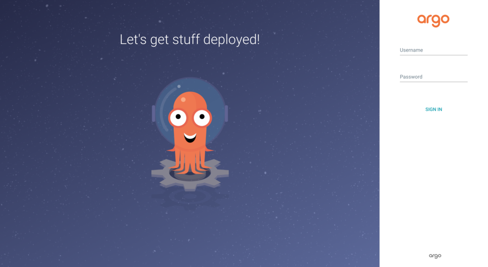 Der Nutzername für die Login-Oberfläche ist admin und das Passwort ist der Pod-Name des Ago CD Servers, der mit dem folgenden Command zurückgegeben werden kann: