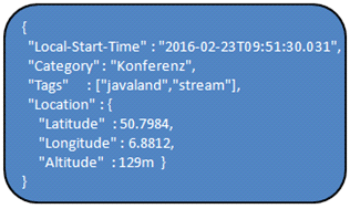 An dieser Stelle könnten auch noch zusätzliche Meta-Informationen aufgenommen werden, wie z. B. der Standort des Senders. Möglich wäre z. B. die Übertragung eines JSON-String wie in Abb.6 zu sehen.