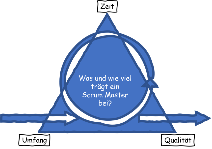 Um die Lücke zwischen Rollenbeschreibungen und Erwartungen und der anfänglichen Frage nach dem ROI eines Scrum Masters zu schließen, müssen wir zunächst einige messbare Metriken auswählen, die auf den Erfolg hinweisen. In der Produktentwicklung wird der Erfolg üblicherweise durch Zeit und Kosten bis zur Markteinführung, Umfang und Qualität quantifiziert.